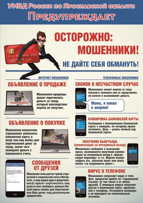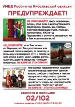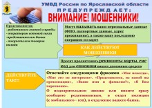 Предлагаем познакомиться с профилактическими материалами (листовки, видеоролики) УМВД России по Ярославской области "Осторожно, мошенники!"