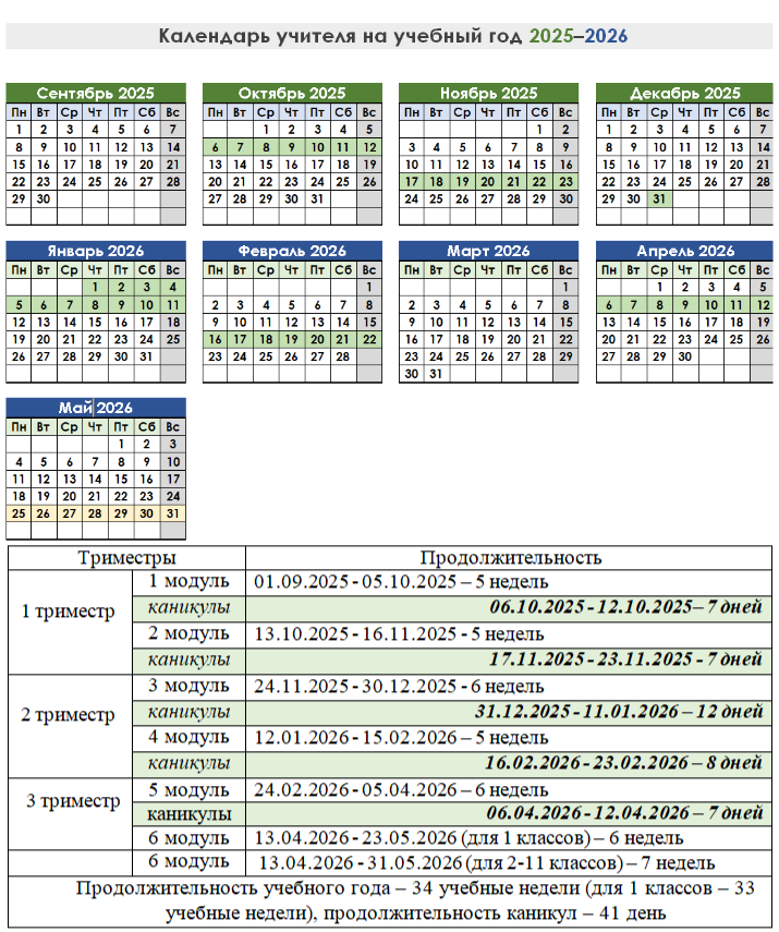 - Календарный учебный график на 2025-2026 учебный год
